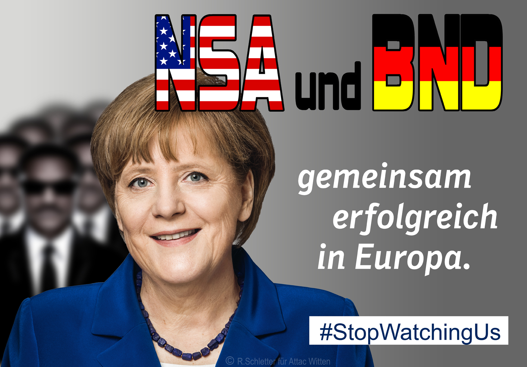 Attac Witten organisiert Book-crossing mit dem Buch Die globale Überwachung von Glenn GreenwaldDer bundesweite Aktionstag #StopWatchingUs waram Samstag, 26.Juli 2014 ![]() Freiheit und Demokratie schützen – Überwachungswahn stoppen!Die Enthüllungen des amerikanischen Sicherheitsexperten Edward Snowden haben öffentlich gemacht, dass Geheimdienste uns rund um die Uhr abhören: unsere gesamte digitale Kommunikation wird auf „verdächtige“ Inhalte über- prüft. Dazu werden zentrale Internetknoten angezapft, Datensammlungen der großen Internetkonzerne wie Google, Facebook, Microsoft, Apple oder Youtube werden durchforstet und Hintertüren in Software eingebaut.Und wir werden nicht nur abgehört – die Geheimdienste nutzen ihre Macht auch, um Inhalte zu manipulieren: Ist eine Terrorwarnung echt? Beruht sie auf Tatsachen? Oder ist sie ein Alibi, um eine in der Öffentlichkeit umstrittene Maßnahme zu rechtfertigen? (Ein bitteres Beispiel hierfür ist die Giftgas-Lüge, die in den Irakkrieg führte). Unsere Grundrechte sind in Gefahr!Unser Grundgesetz definiert mit den Grundrechten (Art. 1 -19) einen Schutz der Persönlichkeit (Privatsphäre), der nicht in seinem Wesensgehalt angetastet werden darf und durch den Staat zu garantieren ist.Wenn wir nun von Snowden erfahren, dass Bundesnachrichtedienst (BND) und Verfassungsschutz seit langem mit amerikanischen und britischen Geheim- diensten zusammenarbeiten, so ist dies eine empörende Aushöhlung unseres Grundgesetzes! Denn im normalen beruflichen und privaten Leben können wir unsere Teilnahme an elektronischem Datenaustausch ja gar nicht vermeiden, auch wenn wir unsere Privatsphäre nicht bei Facebook & Co preisgeben. Hierbei haben wir einen verfassungsmäßigen Anspruch auf Schutz! Selbst das Argument SICHERHEIT (vor Terrorismus, Kriminalität etc.) berechtigt keineswegs zu anlassloser und flächendeckender Überwachung und Ausspähung, vorbei an gesetzlicher und richterlicher Kontrolle! Auf dem Weg in eine andere Gesellschaft?Demokratie lebt von Gewaltenteilung und gegenseitiger Kontrolle der Staats- organe und von kritischer Information und Stellungnahme durch die Zivilgesell- schaft. Bedroht ist Demokratie immer, wie wir aus leidvoller Erfahrung wissen. Mit der „digitalen Revolution“ , mit Internet, Microchips und Mobilfunk, ist nun eine Dimension kommunikativer Möglichkeiten entstanden, deren technische wie politische „Zähmung“ wir erst noch entwickeln müssen, persönlich als Nutzer und Adressaten wie auch als Gesamtgesellschaft. Elektronischer Daten- austausch ist ein technologischer Standard, hinter den unsere Gesellschaft nicht mehr zurück kann und will, denn er bietet enorme Vorteile. Aber hierbei müssen technologische wie auch politische Grenzen gesetzt werden, wenn wir nicht in einem Datendschungel enden wollen.Die Aufgabe ist gewaltig, groß die Gefahr, in eine digitale Diktatur abzudriften. Edward Snowden hat sein persönliches Lebensglück aufs Spiel gesetzt, um uns auf diese Gefahr hinzuweisen! ![]()